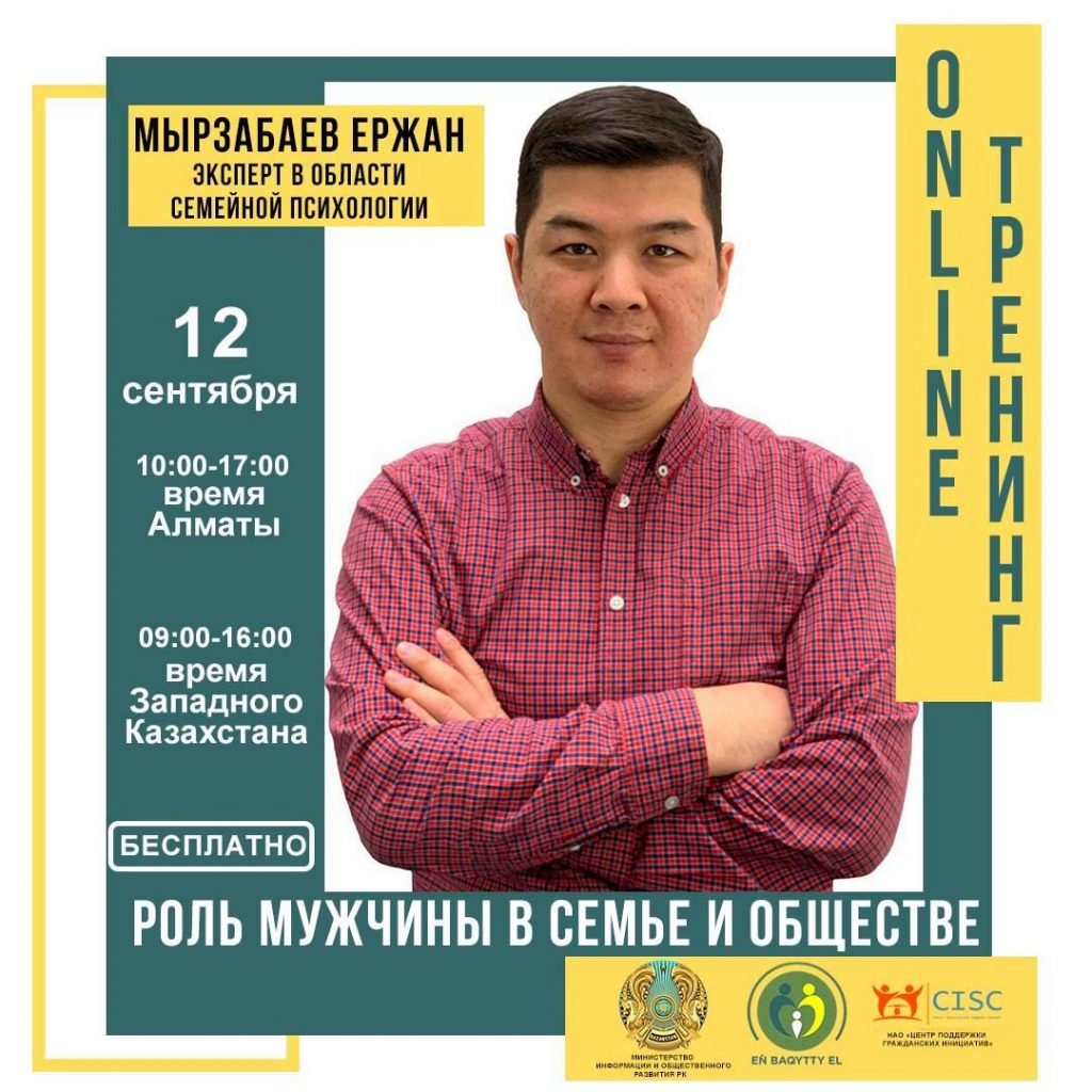 «ОТБАСЫ МЕН ҚОҒАМДАҒЫ ЕРЛЕРДІҢ РӨЛІ» онлайн – тренингі ZOOM платформасы арқылы өтеді