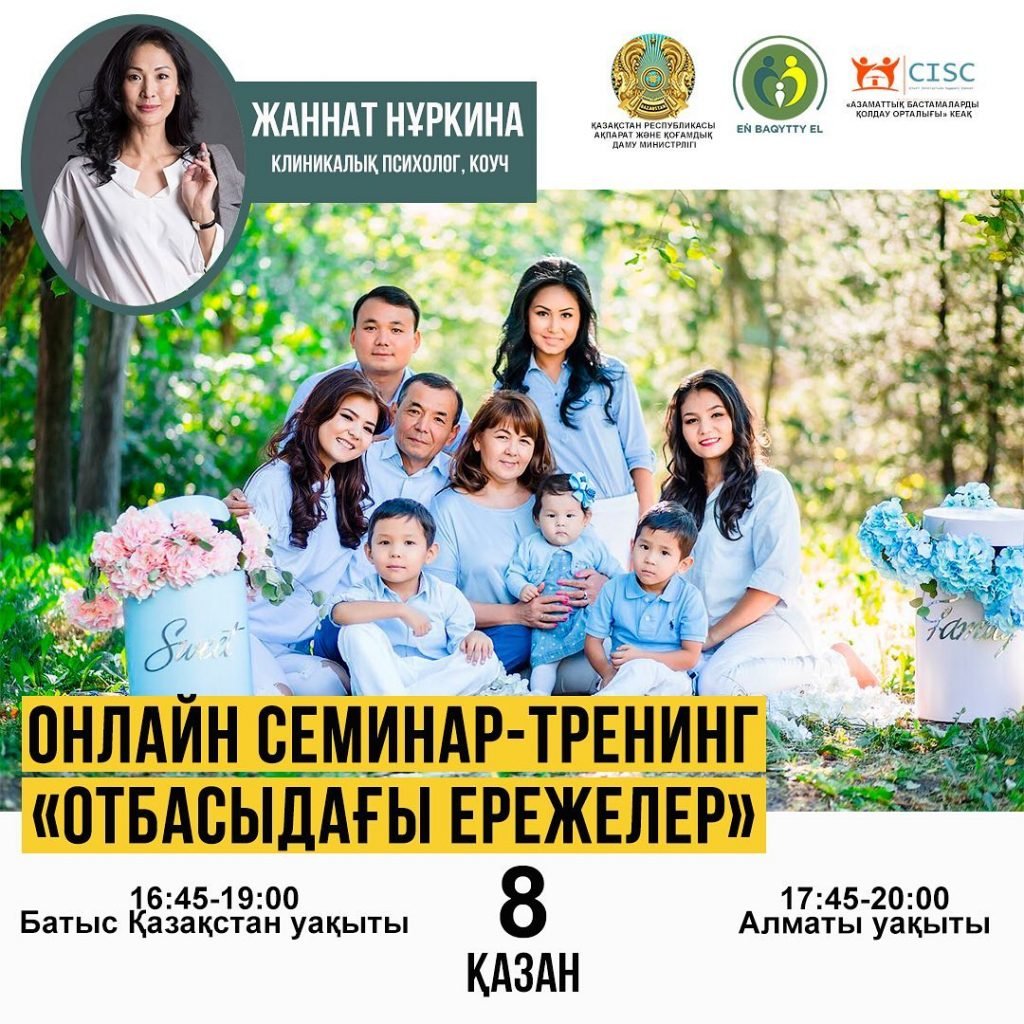 Қымбатты достар 🤗 , сіздерге 8 қазан күні сағат 17:45-20:00-де (Алматы уақыты бойынша) «отбасындағы ережелер» атты онлайн семинар-тренинг өтетінін қуана хабарлаймыз»
